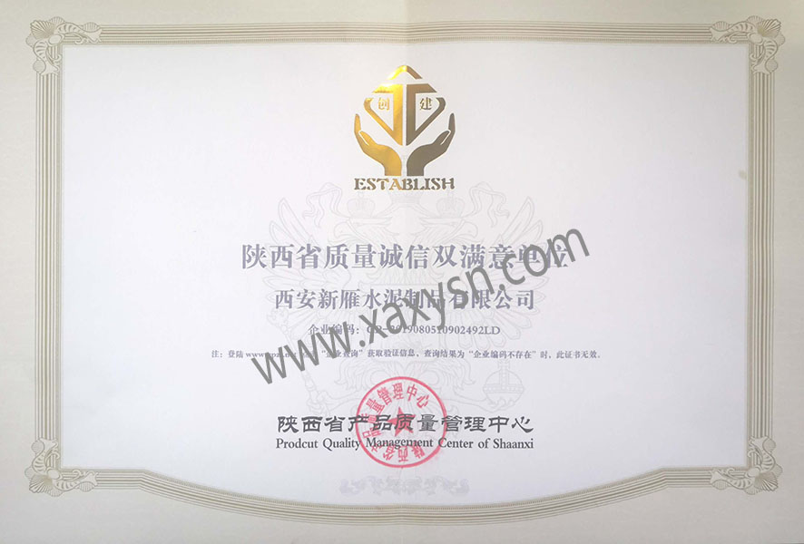 陜西省質(zhì)量誠信雙滿意單位