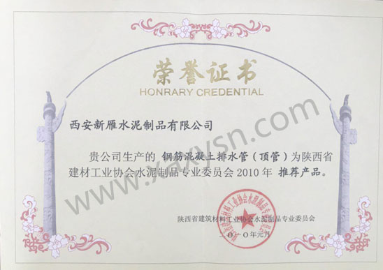 生產(chǎn)的鋼筋混泥土排水管(頂管)為陜西省建材工業(yè)協(xié)會(huì)水泥制品專業(yè)委員會(huì)會(huì)員2010年推薦產(chǎn)品