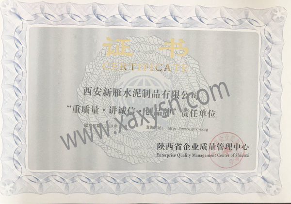 西安新雁水泥制品有限公司“重質(zhì)量.講誠信.創(chuàng)品牌”責(zé)任單位